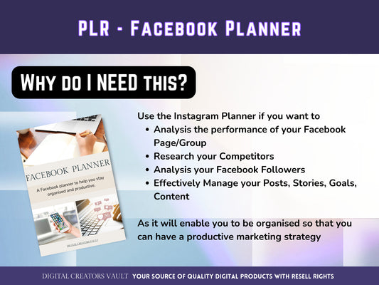 PLR - Facebook Planner | Social Media Planner | Blog Planner | Small Business | Social Media Content Calendar | Content Planner