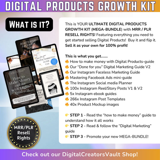 Digital Products Growth KIT mega-bundle - Digital marketing - Instagram - Ebook guides - Work from home MRR PLR resell rights passive income